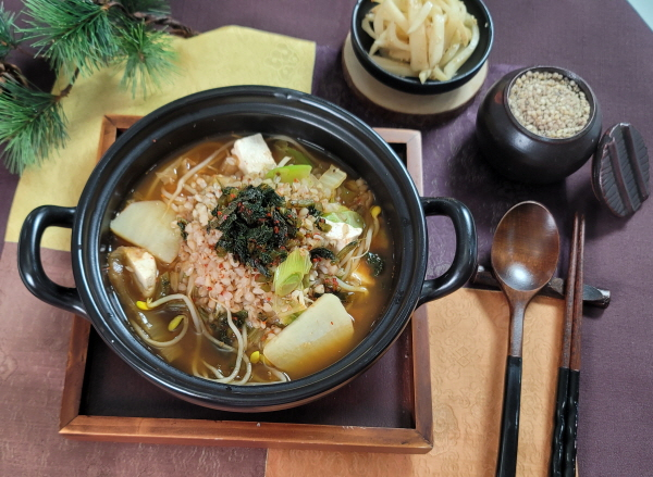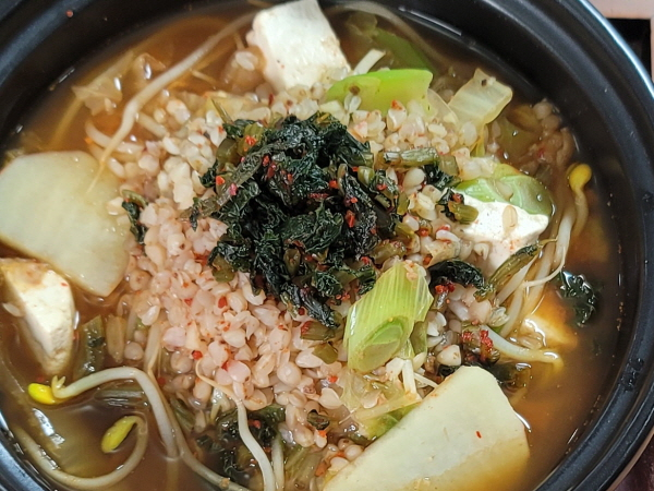 두부 반모, 우거지, 대파20g, 마늘15g, 고춧가루, 콩나물50g,