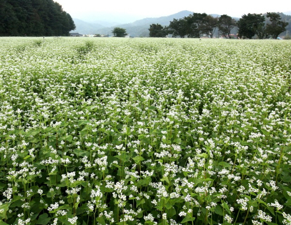 '산허리는 온통 메밀밭이어서 피기 시작한 꽃이 소금을 뿌린 듯이 흐뭇한 달빛에 숨이 막힐 지경이다' 이효석의 단편소설'메밀꽃 필 무렵'에 나오는 구절이다.
