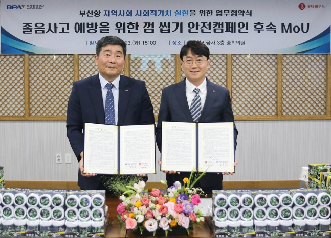 롯데웰푸드는 23일 부산항만공사(BPA)와 졸음운전방지 안전캠페인 업무협약을 체결하고 정기적인 안전캠페인을 이어가기로 했다고 24일 밝혔다.