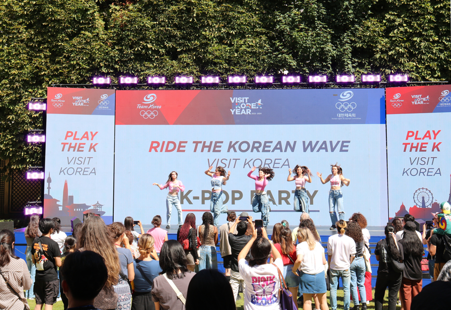 공사는 코리아하우스 야외정원에 한류테마 특별 이벤트도 마련했다. 지난 27일에 시작해 내일까지 5일간 이어지는 특별 이벤트는 K-팝, K-댄스, K-뷰티, K-푸드 등을 한자리에서 즐길 수 있도록 꾸며졌다. 이번 파리 올림픽에서 정식 종목으로 채택된 브레이킹 댄스를 비롯해 K-팝 댄스 클래스, 퍼스널 컬러진단, 한국 메이크업 시연 등 다양한 프로그램이 운영되고 있다. K-팝 파티 사전 예약자를 대상으로는 즉석 컵 떡볶이, 무알코올 맥주 등으로 구성된 K-푸드 꾸러미를 제공하고 있다.