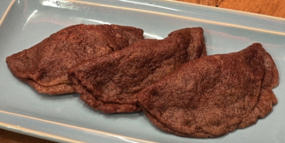 3. 팥소를 둥그렇게 빚어두고 수수부꾸미 위에 올려 반을 접어준다.