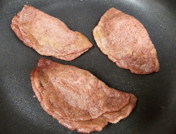 2. 기름을 두른 팬에 반죽을 알맞은 크기로 떼어 타지않게 약불에 둥글 납작하게 지져준다.