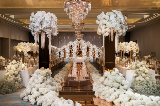 특수 제작한 도금 철제 아치와 골드 오브제들, 그리고 공간을 가득 채운 화이트 컬러 생화의 청아한 색조와 향기가 어우러지는 격조 높은 '나루 볼룸'에서는 프리미엄 웨딩드레스 브랜드의 2024 FW 컬렉션을 선보이는 쇼가 펼쳐졌다. 이후 호텔 나루 서울 - 엠갤러리의 프렌치 셰프팀이 준비한 품격 있는 웨딩 코스 메뉴가 테이블로 서브되고 한정 특전과 함께 웨딩 담당 지배인과 일대일로 상담하는 자리가 마련됐다.