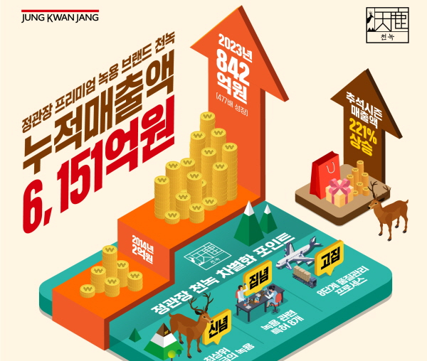 정관장은 '천녹'의 인기 요인으로 품질과 안전성이 검증된 신뢰를 꼽았다. 국내에서 녹용은 이전까지 주로 약재시장을 통해 유통되다 보니 원산지와 관리방법 등을 확인할 방법이 없었는데 건기식 1위 브랜드 정관장만의 차별화 전략이 고객의 사랑으로 이어졌다는 설명이다.