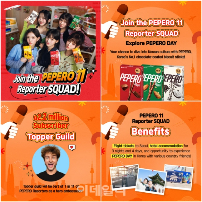 토퍼길드와 함께 할 10명의 국내외 SNS를 운영하는 글로벌 리포터들도 24일까지 모집한다. 지원은 빼빼로 인스타그램에서 프로필 링크를 클릭해 지원 양식을 작성 후 제출하면 된다.