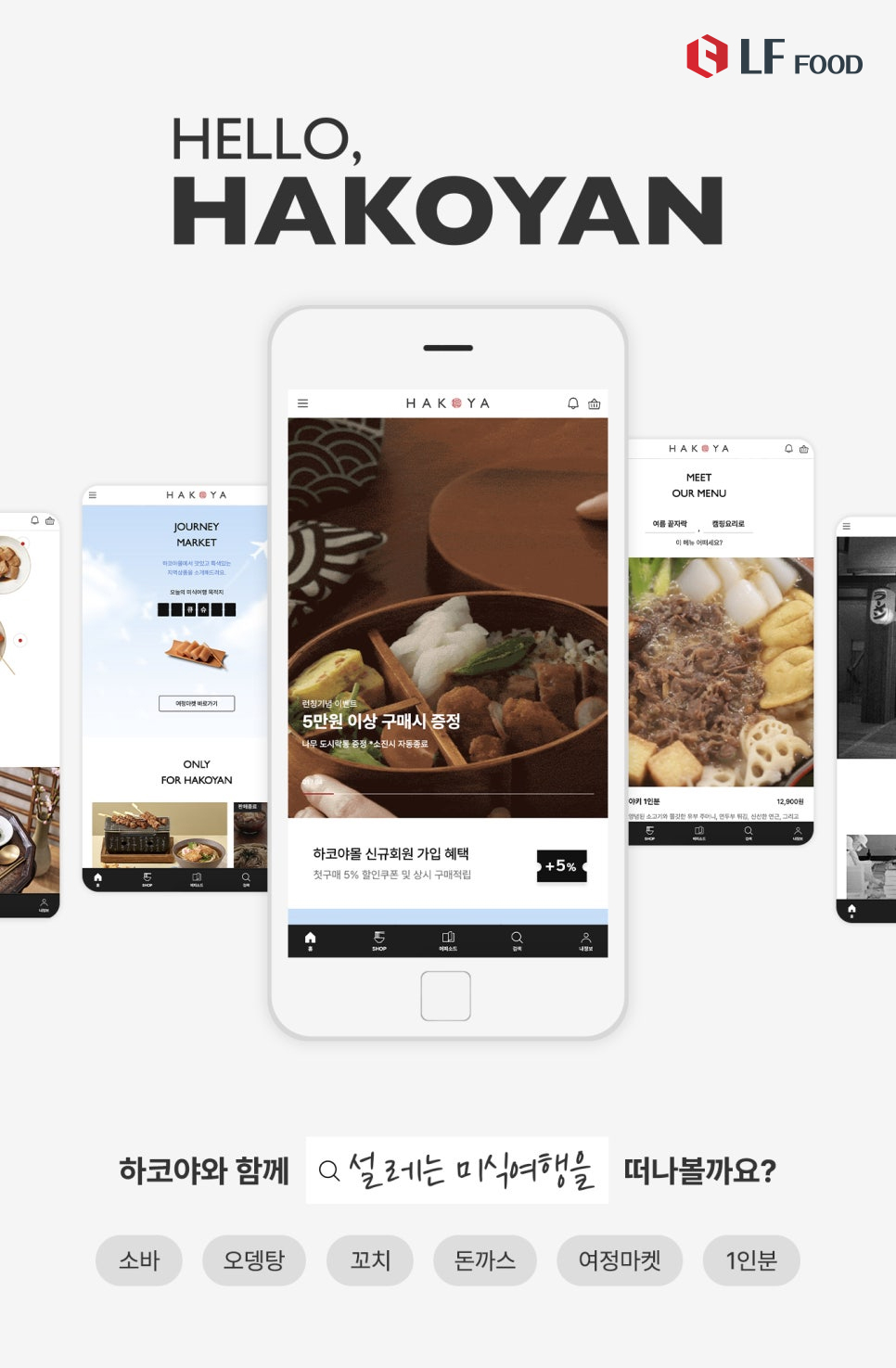 하코야몰은 단순히 요리된 음식을 판매하는 공간이 아닌, 좋은 사람들과 함께 미식 경험과 마음을 나누며 소통하는 식문화 공간을 표방하고자 만들어진LF푸드의 자사몰이다. 정갈한 일식 가정 간편식을 매개체로 귀한 손님을 만나고 대접하는 마음을 경험할 수 있는 공간으로 만들고자 했다.