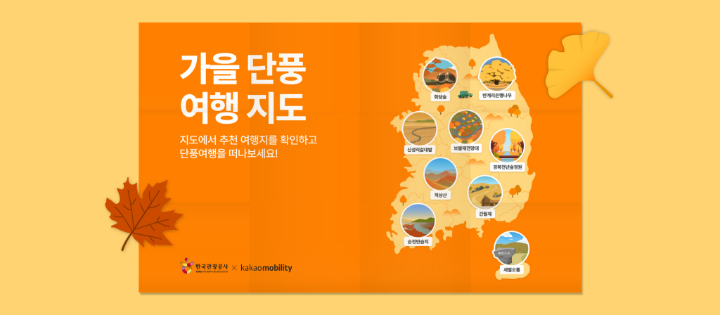 한국관광공사(사장직무대행 서영충, 이하 공사)와 카카오모빌리티가 가을을 맞이해 전국 단풍 명소 27곳을 소개하는 '가을 단풍 여행 지도'를 30일 선보였다.