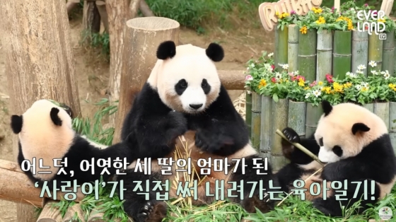 먼저 에버랜드 공식 유튜브 채널에서 올해 1월부터 연재되고 있는 '사랑이 육아일기'는 푸바오와 쌍둥이까지 판다월드에서 세 마리의 판다를 출산한 엄마 아이바오의 육아일기 형식을 띄고 있다. 콘텐츠 제목도 사랑스러운 보물을 뜻하는 아이바오의 이름에서 따왔다.