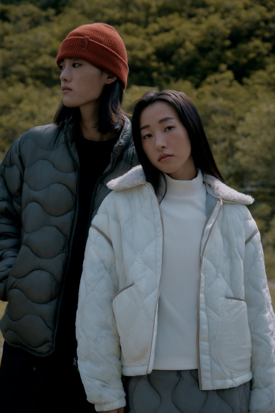 이번 신제품 역시 이 충전재를 사용해 흡습발열 기능을 갖추고 우수한 보온성을 제공함과 동시에 충전재를 감싸는 원단인 다운백을 제거한 2레이어 구조로 기존 다운 제품보다 더욱 가벼운 점이 특징이다. 또, 겉감에는 물의 흡수를 막아주는 WR 발수 가공 처리가 되어 있어 생활 방수까지 가능하다. 여기에 공기와 같이 유연하고 가벼운 흐름을 표현한 퀼팅 디자인을 적용해 캐주얼 느낌을 줘 편안하게 입을 수 있는 장점도 갖췄다.