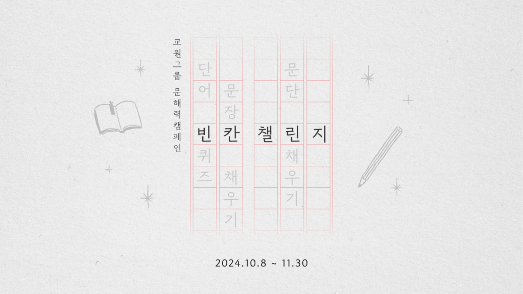 교원그룹이 마련한 '빈칸 챌린지'는 단어 퀴즈, 문장 채우기, 문단 채우기 등을 통해 자연스럽게 문해력을 키울 수 있도록 돕는 캠페인이다. 교원그룹 SNS 채널에 게시된 '빈칸 챌린지' 링크를 통해 참여할 수 있다.