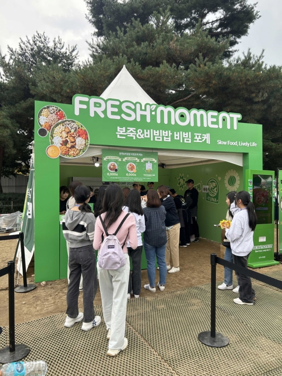 닭구이에 오리엔탈 소스를 더한 풍미로 현재 매장에서 가장 높은 인기를 끌고 있는 '그릴드 닭구이 비빔 포케'와 참치살과 스리라차 마요 소스의 조화로 2030의 입맛을 사로잡은 '참치 비빔 포케' 2종이 페스티벌 현장의 특성에 맞게 본품 대비 슬림한 구성으로 제공되어 높은 만족도를 선사했다. 또한 환경보호와 활용도 두 측면을 모두 고려해 비빔 포케 구매자 전원에게 증정한 '친환경 드링크백'도 호평을 받았다.