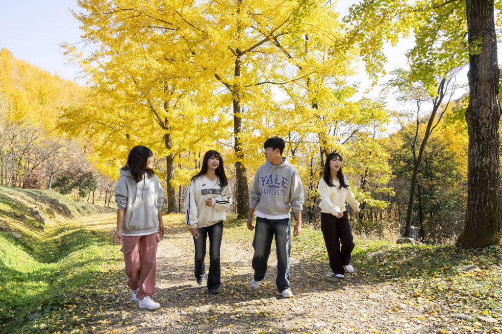 약 5km에 이르는 트레킹 코스를 통해 은행나무숲길을 천천히 돌아볼 수 있고, 중간중간 앉아서 쉴 수 있는 나무의자와 명상장, 그리고 은행나무숲이 한눈에 내려다보이는 전망대도 있다.