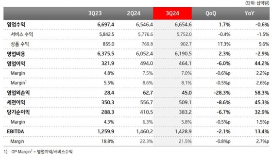 무선 사업은 3분기 플래그십 단말 출시 영향으로 5G 가입자 비중이 전체 핸드셋 가입자 중 76%를 기록했다. 무선 서비스 매출은 로밍 사업과 알뜰폰(MVNO) 성장으로 전년 동기 대비 2% 성장했다.