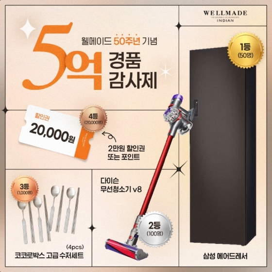 이와 함께 전국 360여 개 웰메이드 매장에서는 50주년 기념 5억 경품 감사제가 성황리에 진행되고 있다.