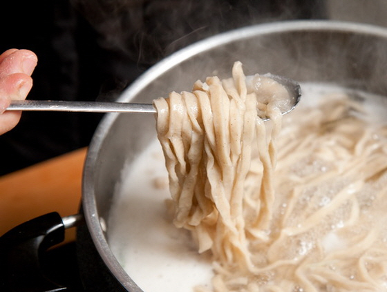 김민희 아리부엌양조 대표는 "메밀은 미리 반죽해두면 수분을 빨리 흡수해 금방 딱딱해질 수 있기 때문에 메밀가루와 찬물을 조금씩 섞어 반죽하는 것이 요령"이라며"꼭 집된장(막장)으로 국물을 만들고 갓김치와 함께 드셔야 제맛이 난다"고 덧붙였다.