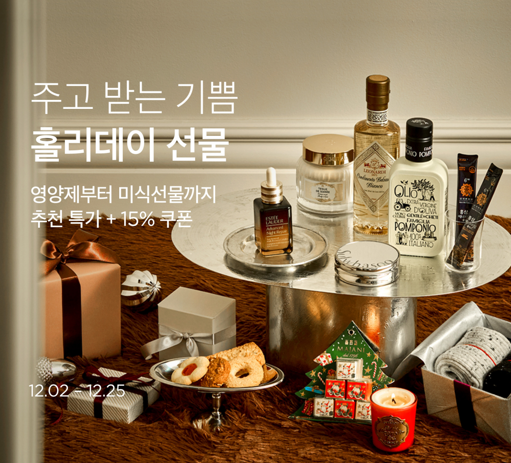 선물할 일 많은 12월을 위해 각종 베스트 선물 상품들도 마련했다. '랑콤' 2024 홀리데이 리미티드 뷰티박스, '전통주' 전주 이강주 VIP 선물세트, '오설록' 시크릿 티 스토리 등의 선물세트를 가격대별로 구분해 편하게 고를 수 있도록 했다.