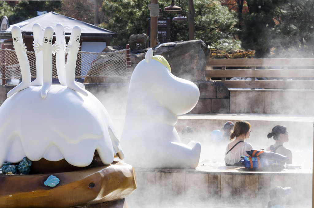 거기에 무민, 스노크메이든, 해티패티 등 귀엽고 앙증 맞은 무민 캐릭터 3D 조형물들과 북유럽 컨셉의 파사드, 겨울 나무 포토스팟을 주변에 조성해 마치 핀란드 숲 속에서 스파를 즐기는 듯한 이국적인 분위기를 연출했다.