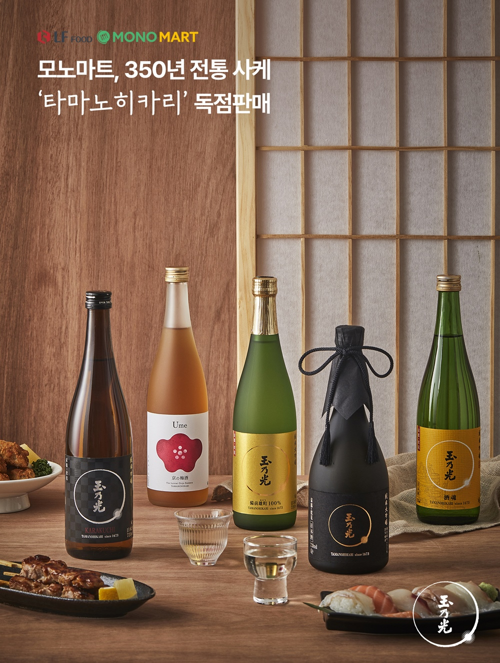 LF푸드의 글로벌 식자재 마켓, 모노마트가 350년 전통 사케 '타마노히카리'를 국내 독점 판매하며 사케의 대중적인 저변 확대에 나선다고 23일 밝혔다.