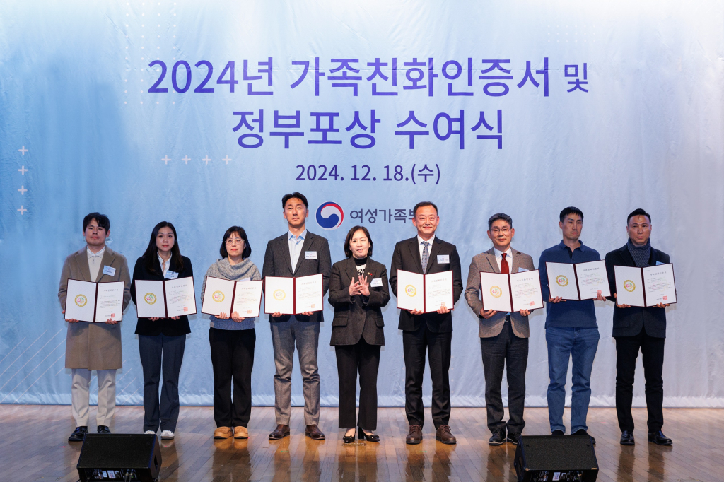 '가족친화 우수기업 인증'은 여성가족부가 가족친화 환경 조성을 위해 출산 및 양육 지원, 유연 근무제, 돌봄 관련 제도 등 다양한 가족친화제도를 모범적으로 운영하는 기업에게 인증을 부여하는 제도로 2~3년 주기로 심사를 거쳐 선정하고 있다.