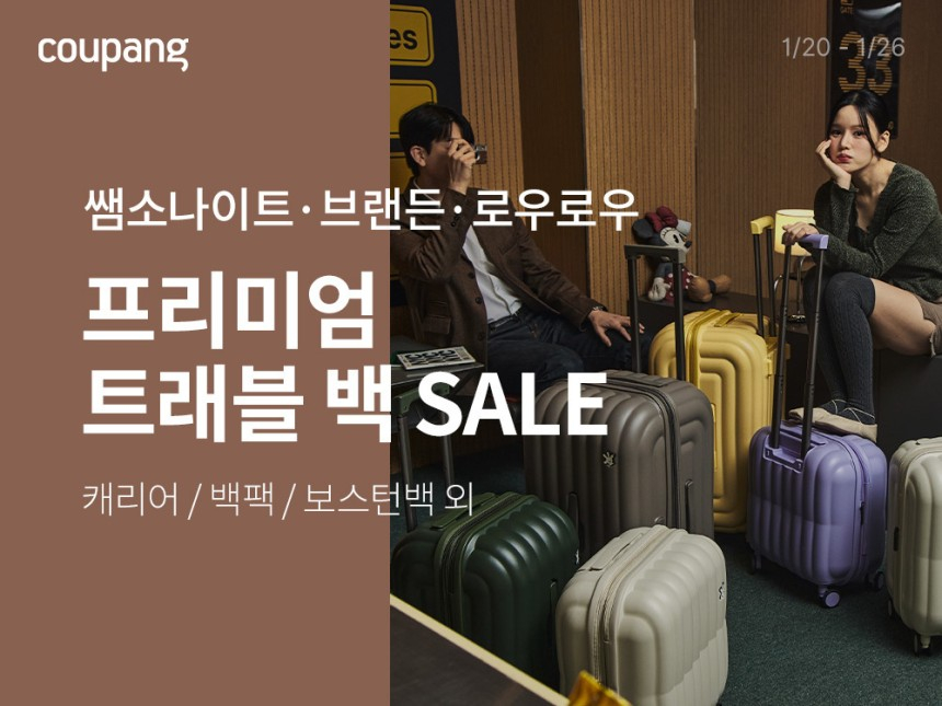 쿠팡은 설 연휴를 맞아 캐리어를 포함한 프리미엄 여행 가방 브랜드 특별전을 연다고 23일 밝혔다.