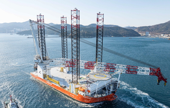 한화오션의 대형 해상풍력발전기 설치선/사진제공=한화오션