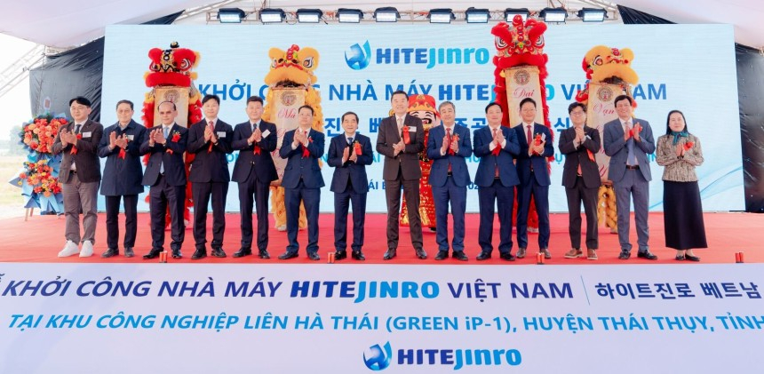 이날 착공식에는 김인규 대표이사와 황정호 해외사업본부 전무, 정성훈 진로소주 베트남 법인장 등 하이트진로 관계자를 비롯해 응우옌 칵 탄 타이빈성 서기장과 응우옌 마잉 흥 타이빈성 성장 등 베트남 주요 인사 등 160여 명이 참석했다.