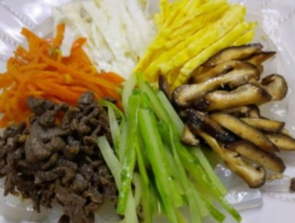 (나물 재료를 추가할 경우 같은 방법으로 채 썰어 둔다)