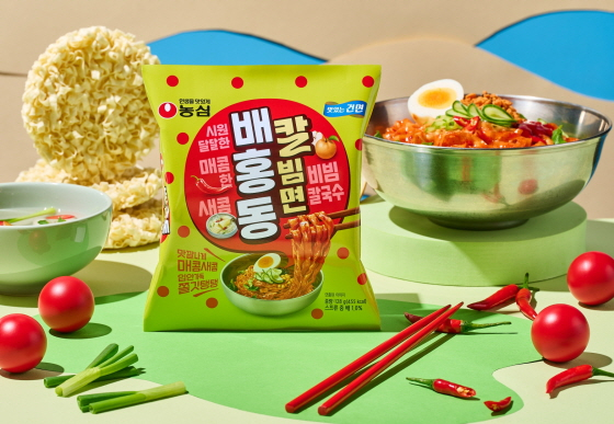 농심이 배홍동 브랜드로 선보이는 세 번째 제품 '배홍동칼빔면'을 출시한다. 배홍동 고유의 매콤 새콤한 소스에 칼국수 면발을 활용, 입안 가득 풍성하고 쫄깃한 식감을 느낄 수 있는 제품이다.