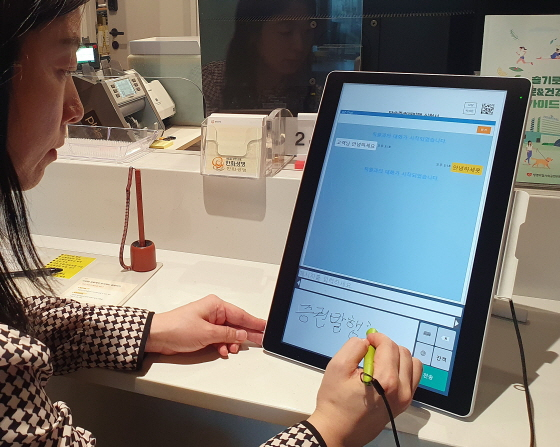 한화생명이 고령층과 청각 장애인 등 말하고 듣는 의사소통에 불편함이 있는 고객을 위해 태블릿을 활용한 채팅 상담 서비스를 도입했다.