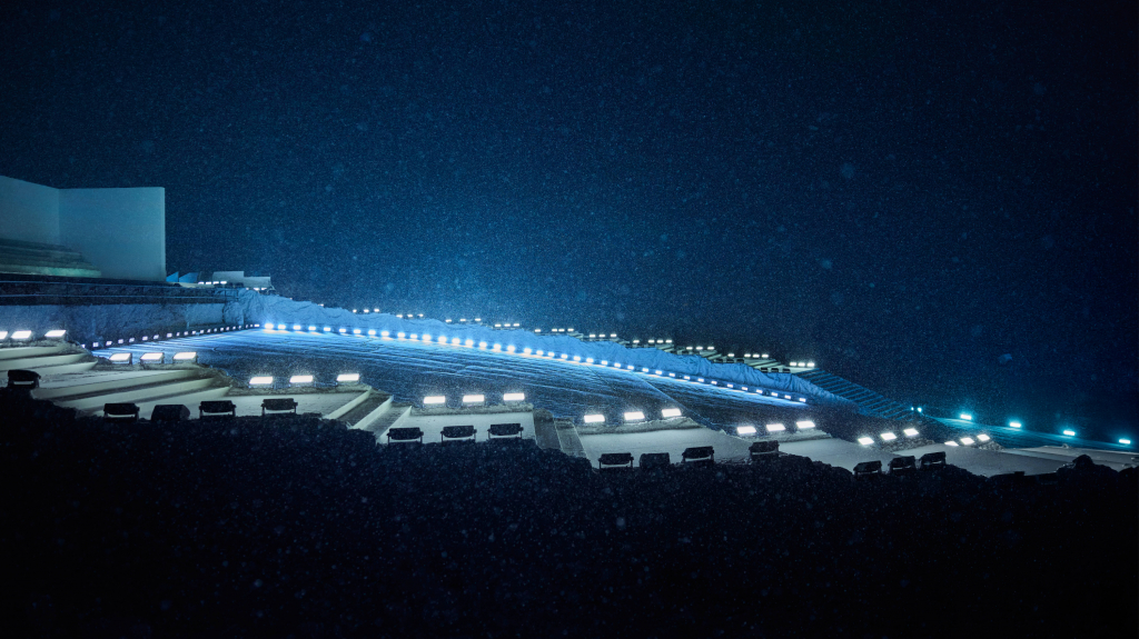어제의 경험은 단순한 패션쇼가 아닌 눈 덮인 풍경을 배경으로 상징적인 쿠르슈벨 알티포트에서 시작된 특별한 밤이었다. 게스트들은 황홀한 겨울 분위기에 완전히 몰입한 채 만끽했다. 하늘이 어두워지자, 순백의 빛줄기가 런웨이를 감싸며 공중에 떠 있는 듯한 돔 형태의 신비로운 공간을 형성해 야외 세트에 친밀한 분위기를 더했다. 설경을 닮은 순백의 색감은 듀베 케이프를 두른 채 U자형 런웨이에 마주 앉은 게스트들을 감싸 안았다. 라이브 심포니 오케스트라는 게스트들을 고조된 세련된 경험으로 이끌었다. 섬세하게 조율된 바이올린의 선율은 그 순간의 경이로움과 공유된 감정을 더욱 증폭시키며, 현대적인 곡과 클래식한 곡이 어우러져 감동을 선사했다.