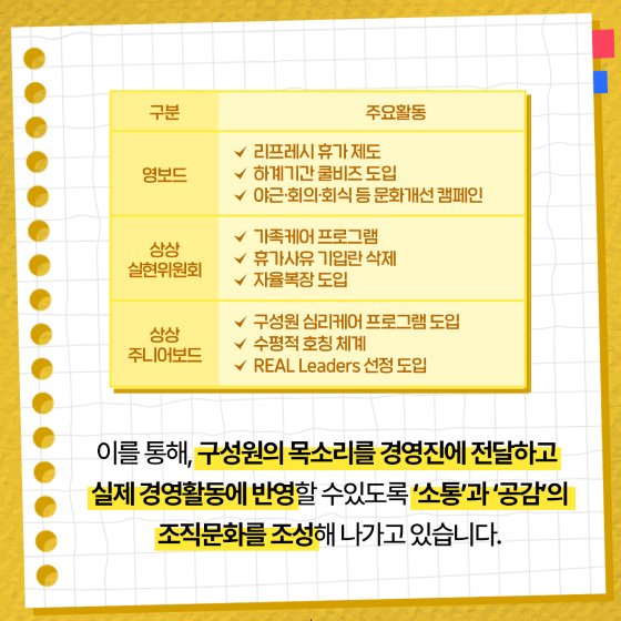 비즈/라이프비즈/산업KT&G, 조직문화 혁신 박차발행 : 2025.03.24 ・ 15:32수정 : 2025.03.24 ・ 15:40채준 기자광고삭제KT&G가 조직문화 혁신을 위해 글로벌 주니어 커미티(Global jr. Committee)를 10개월간 운영하고 도출된 성과를 공유하기로 했다./사진제공=KT&G/사진제공=KT&G/사진제공=KT&G/사진제공=KT&G/사진제공=KT&G/사진제공=KT&G/사진제공=/사진제공=/사진제공=KT&G진제공=<저작권자 © 스타뉴스, 무단전재 및 재배포 금지>daumKTG조직문화혁신미티추천 기사채준 기자기자홈좋아요 비즈/라이프-비즈/산업의 인기 급상승 뉴스비즈/라이프-비즈/산업의 최신 뉴스