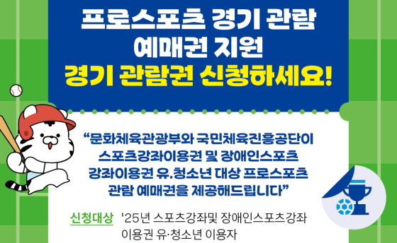본 사업으로 스포츠강좌이용권 및 장애인 스포츠강좌이용권 수혜자를 비롯해 학교(가정) 밖 청소년, 탈북 유·청소년, 지역아동센터 소속 아동 등 다양한 유·청소년 대상자들에게 프로스포츠 경기관람 기회가 제공된다.