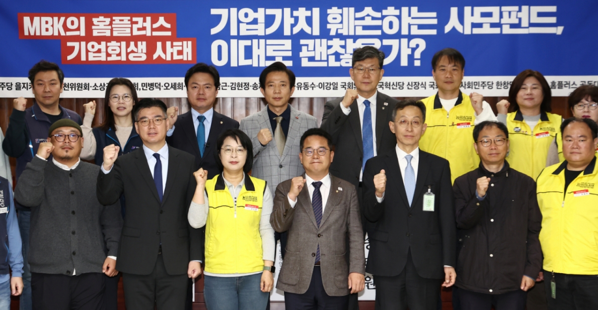 10일 서울 여의도 국회도서관에서'MBK의 홈플러스 기업회생 사태 긴급토론회'가 열렸다.민병덕 의원이 위원장을 맡은 더불어민주당 을지로위원회, 오세희 의원이 이끄는 민주당 전국소상공인위원회, 강준현·김남근·김현정·송재봉·신장식·안도걸·유동수·이강일·한창민 의원, 홈플러스 공동대책위원회가 함께 주최했다.