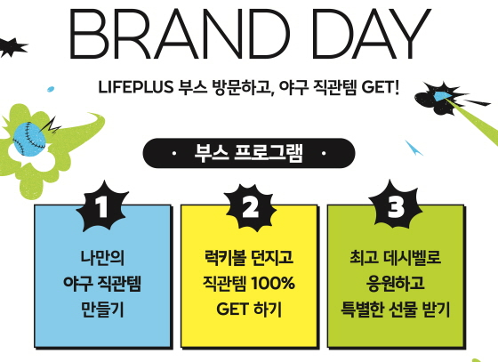 라이프플러스는 25일(금)부터 27일(일)까지 대전 한화생명 볼파크에서 '라이프플러스 브랜드 데이(LIFEPLUS BRAND DAY)'를 개최한다. 이번 행사는 새로운 구장에서 펼쳐지는 시즌을 응원하는 동시에 시민들에게 생동감 넘치는 특별한 경험을 제공하기 위해 마련됐다.