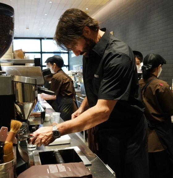 폴 바셋은 24일 강남역 삼성화재점을 시작으로 7개 매장을 방문해 고객들에게 직접 커피를 만들어주는 추출 행사를 진행했고, 행사장 현장에서 고객들과 함께 사진 촬영을 하거나 사인을 해 주는 등 고객들과 직접 소통하며 특별한 시간을 가졌다.