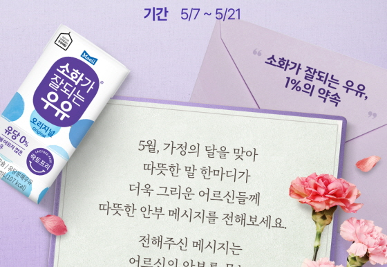 매일유업 '소화가 잘되는 우유'가 8일 어버이날을 맞아 독거 어르신의 고독사 예방을 위한 '소화가 잘되는 우유, 1%의 약속' 캠페인을 2주간 실시한다.