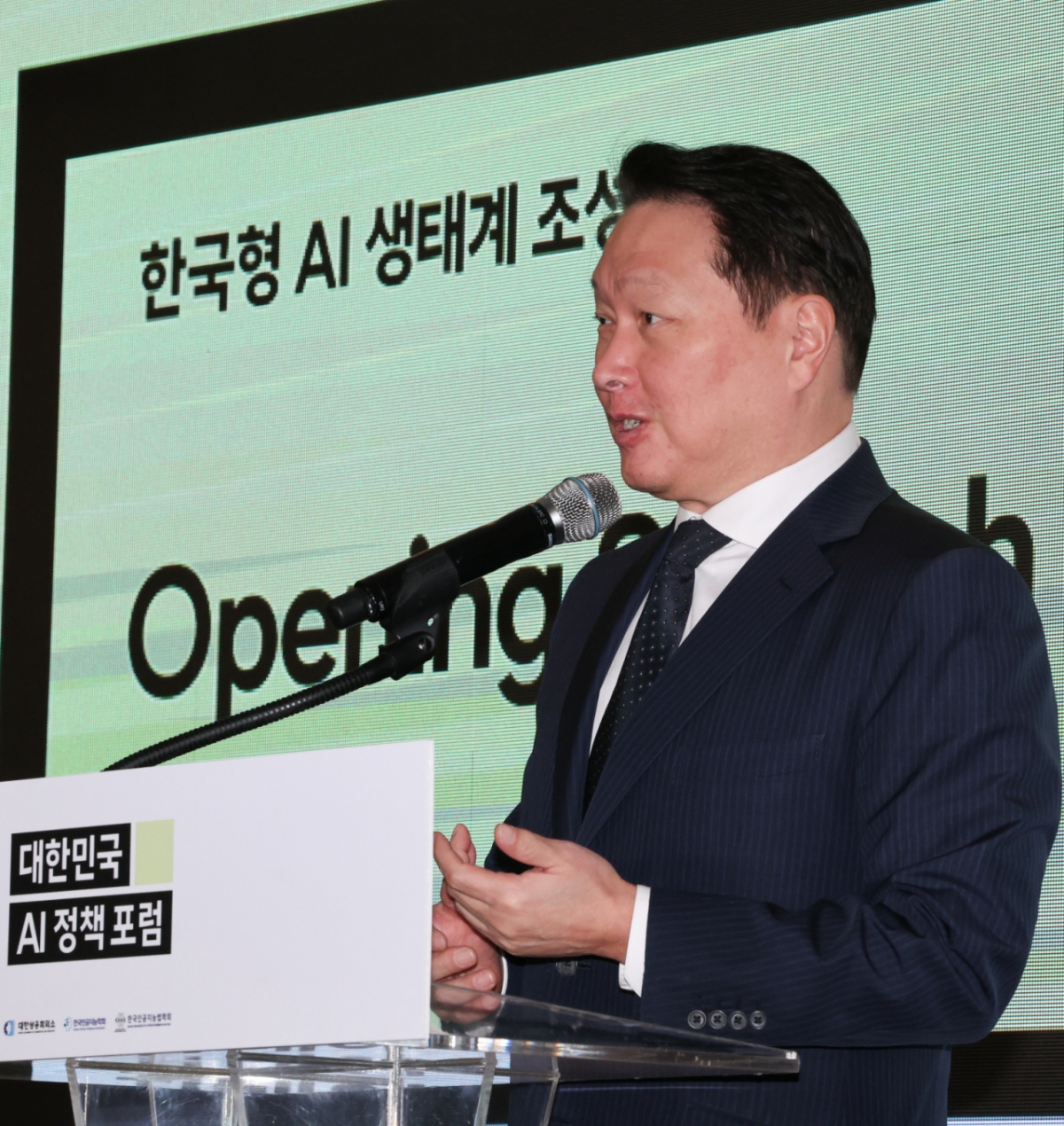 최 회장은 9일 서울 중구 소공동 롯데호텔에서 열린 '대한민국 AI 정책포럼'에서 "AI 경쟁에서 가장 힘든 점은 (기술 개발에) 엄청난 리소스가 들어가는데 기술 발전 속도가 무지하게 빠르다는 것"이라며 "리소스를 제대로 갖춘 국가는 잘 할 수 있고 그렇지 못한 나라는 잘 하기 어렵다"고 했다.