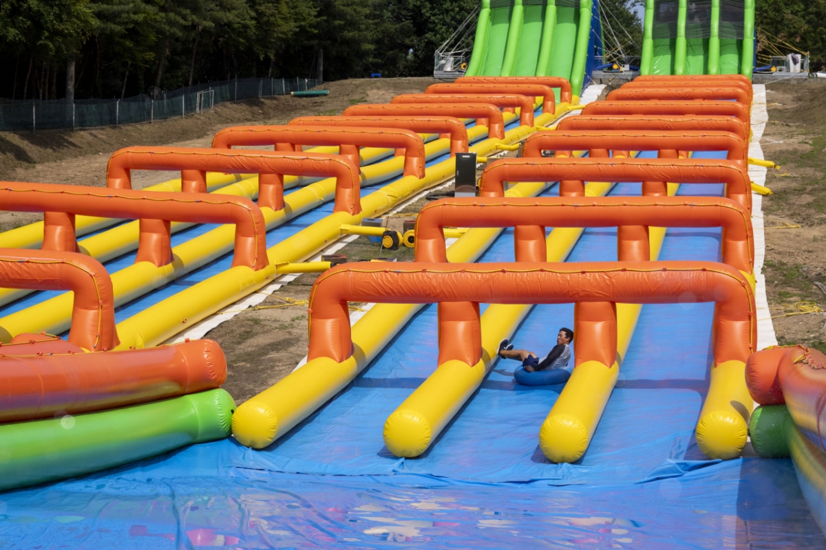 사계절 썰매를 즐길 수 있는 레일 슬라이드(8개 레인)는 90미터 길이의 슬로프 레일 위를 바퀴가 달린 썰매에 탑승해 질주할 수 있으며, 여름 시즌에는 스프링클러, 워터 스프레이 등을 설치해 더욱 시원한 슬라이드 체험을 선사한다.