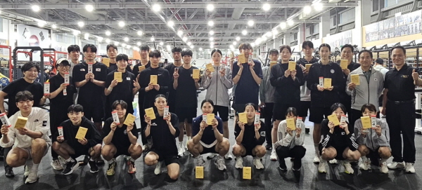 또한 함께 전달된 '알리오플러스'는 100% 국산 마늘을 발효해 만든 스틱형 건강음료로, 간편하게 섭취할 수 있어 훈련 중 면역력 및 컨디션 관리에 유용한 제품으로 소개되었다.