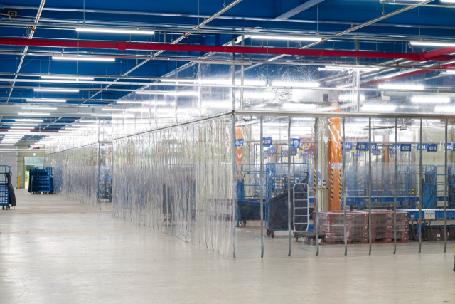 CLS는 분류작업, 프레시백 세척 등 업무가 일정 공간에서 밀집해 이뤄지고 있는 특성을 고려해 작업 구역에 냉기 유출 방지 커튼 및 천장형 시스템 에어컨을 설치해 차폐식 냉방 작업 구역을 형성했다.