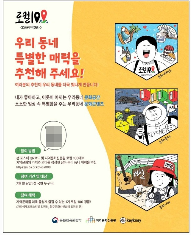 '제2기 로컬100' 후보 추천은 공식 누리집에서 받는다. 지역문화의 가치와 의미를 정성껏 담아 후보를 추천한 참여자 중 추첨을 통해 '자라섬재즈페스티벌', '청주공예비엔날레' 관람권 등 지역문화를 즐길 수 있는 선물도 증정한다.