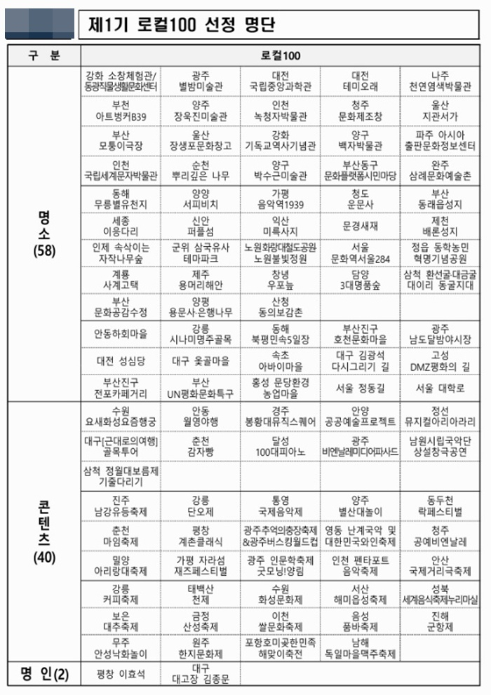 문화체육관광부(장관 유인촌)는 지역 대표 문화자원을 국민과 함께 발굴하고 확산하기 위해 '제2기 로컬100(2026~2027)'을 선정한다고 밝혔다. 이를 위해 1일부터 31일까지 국민을 대상으로 우리 동네 숨은 문화 매력을 추천받아 '제2기 로컬100' 후보군을 모집한다.