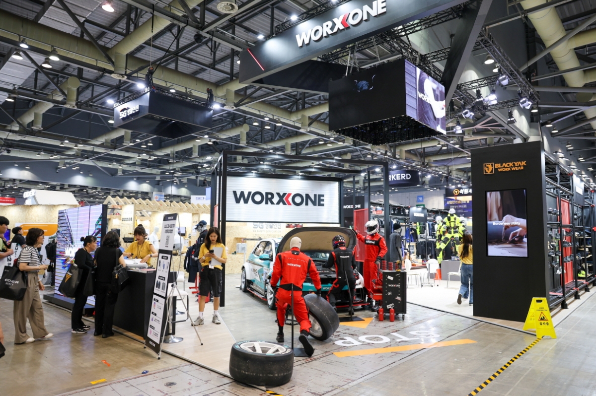 또, 화려한 전시로 이목을 끈 '웍스원'의 신규 미케닉(Mechanic) 라인은 프로(PRO), 코어(CORE), 베이직(BASIC) 3가지로 구성됐다. 프로 라인은 고기능성 소재와 인체 공학적 설계를 적용해 높은 내구성과 편의성을 갖췄으며, (사)대한자동차경주협회와 협업해 레이싱 대회에서 미케닉의 실제 착용을 고려한 국내 규격으로 개발됐다. 코어 라인은 대전, 발유, 방오 등 기능성과 고내구성 소재를 적용한 표준형 제품군으로 다양한 산업현장에 적합하며, 베이직 라인은 합리적인 가격과 캐주얼한 디자인으로 일상과 업무 환경 모두에서 활용할 수 있도록 기획됐다.