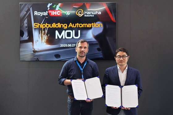 한화로보틱스가 네덜란드 대표 조선소 로열 IHC와 손잡고 용접 자동화 기술 개발에 나선다.