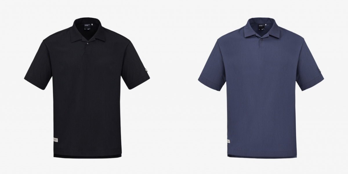 프로-스펙스는 독특한 크링클 주름 가공 원단을 사용한 '크링클 폴로 티셔츠'를 선보였다. 자잘한 주름이 잡혀 있어 피부에 달라붙지 않고 시원한 착용감을 제공하며, 단정한 카라 디테일과 캐주얼한 분위기가 적절히 조화되어 일상과 가벼운 액티비티 모두에 어울리는 제품이다.