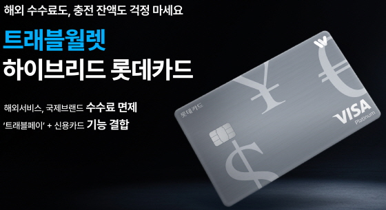 롯데카드가 트래블월렛과 제휴해 해외 이용 수수료 면제 혜택과 신용카드 기능을 탑재한 '트래블월렛 하이브리드 롯데카드'를 선보였다.