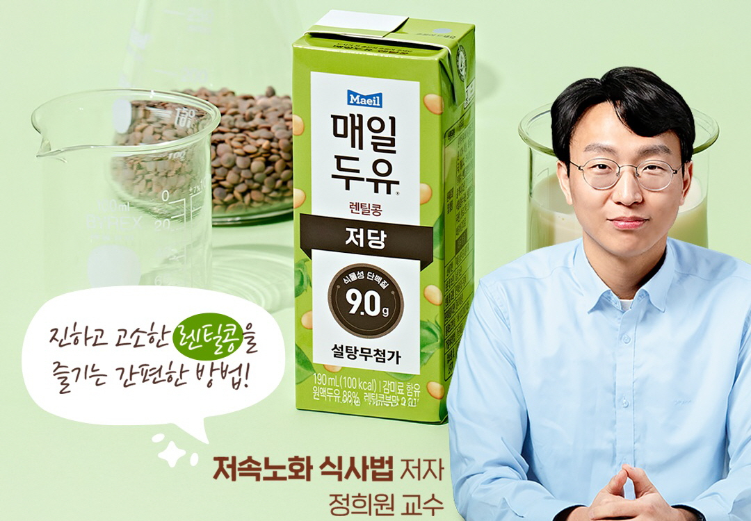 매일유업 매일두유가 정희원 의학박사와 공동개발한 신제품 '매일두유 렌틸콩'을 출시했다.