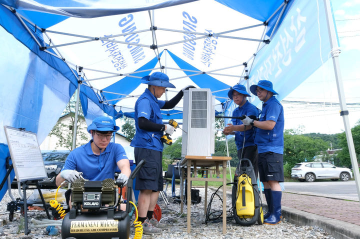 현장에서 침수 전자제품의 상태를 확인하고 세척·수리·부품 교체 등을 실시하고 있다. 서비스 매니저가 피해 가정을 직접 방문하는 '찾아가는 서비스'도 함께 진행하며 도움이 필요한 곳에 지원을 펼치고 있다.
