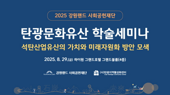 강원랜드사회공헌재단이 오는 29일 13시 30분 정선 하이원 그랜드호텔 그랜드볼룸에서 석탄산업유산의 가치와 미래자원화 방안 모색을 위한 학술세미나를 개최한다.