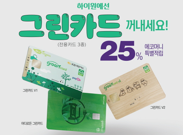 '그린카드'는 국민들의 친환경 생활을 독려하기 위해 환경부, 한국환경산업기술원, BC카드가 협력해 운영하는 정책카드로 환경표지 인증제품, 저탄소제품 등 각 친환경 제품을 구매할 경우 일정 비율을 현금처럼 사용할 수 있는 '에코머니 포인트'로 적립해준다.